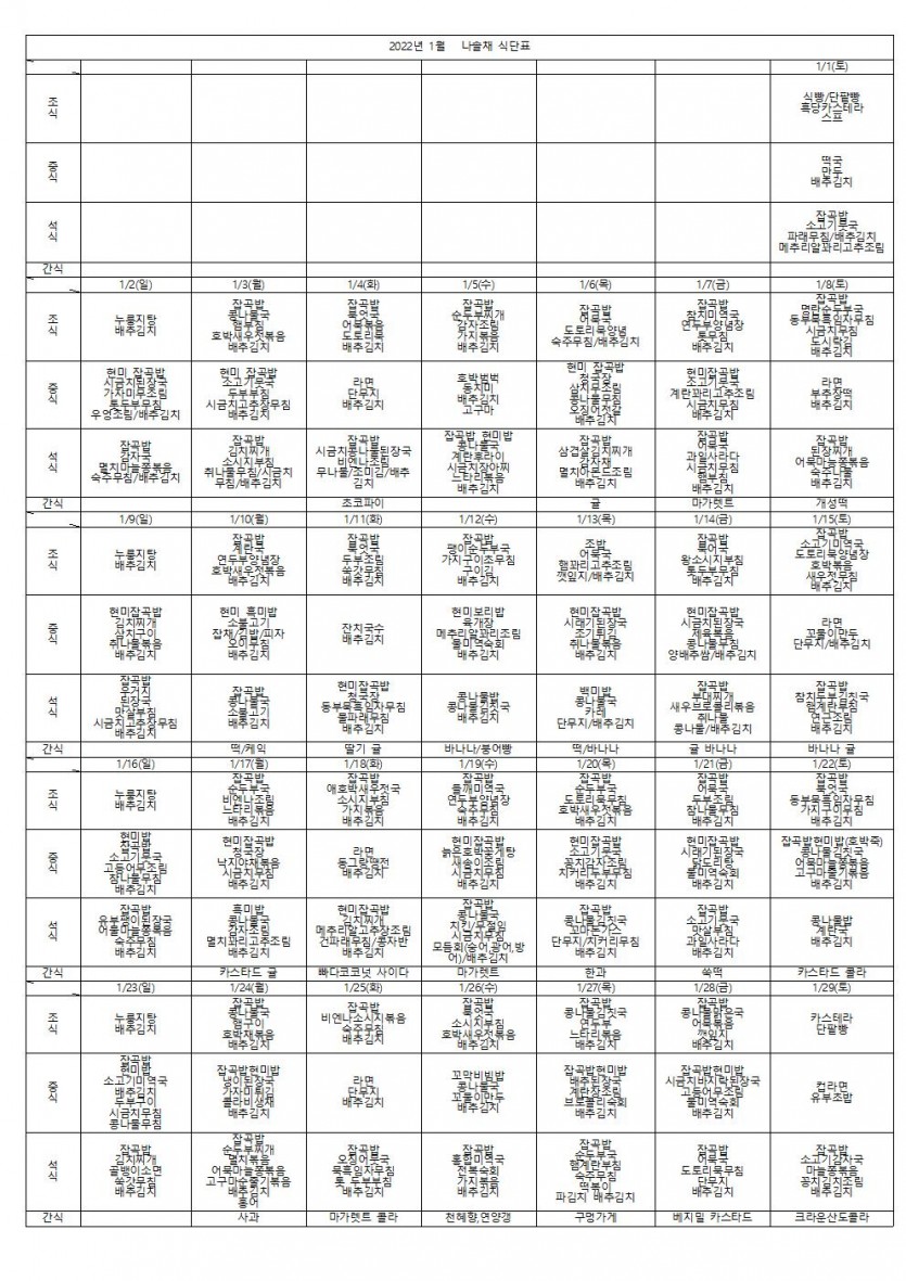 2022년 1월 나솔채 식단표 페이지 정보 작성자 나솔채 댓글 0건 조회 359회 작성일 22-05-12 09:25 목록 본문 2022년 1월 나솔채 식단표 댓글 0 댓글목록 등록된 댓글이 없습니다.